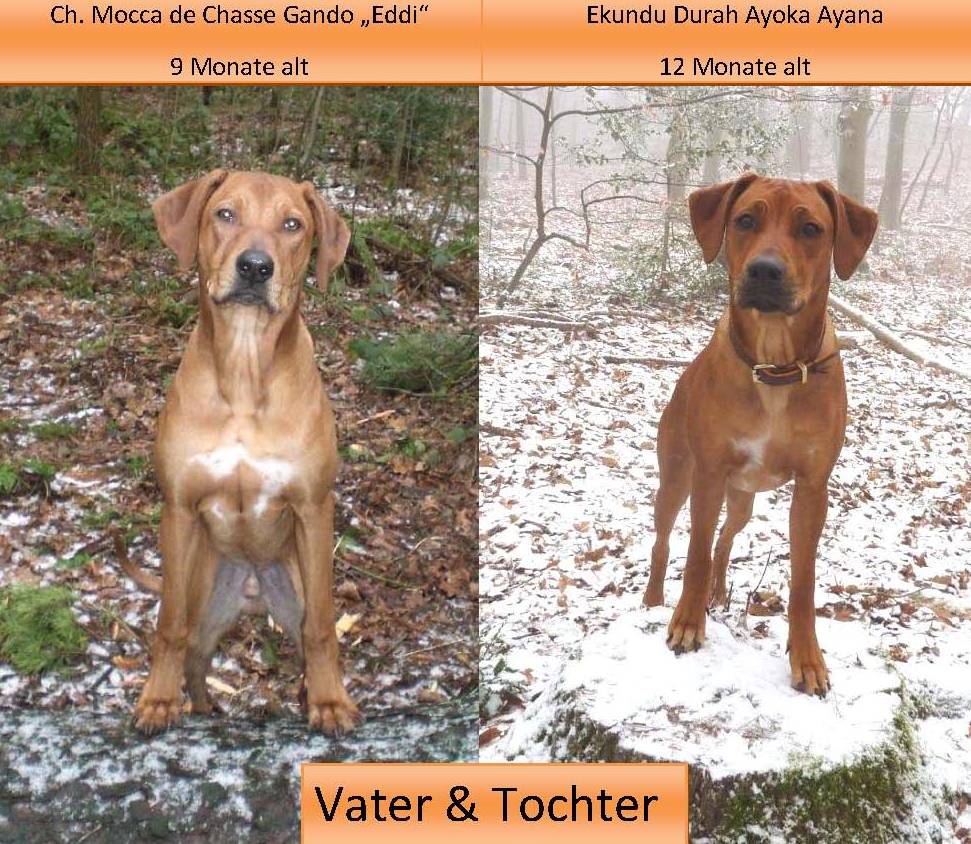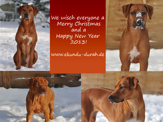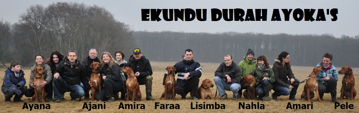 19. December 2012 We were diligent and have now (we hope) all pictures online. We are glad, to have so much contact with our offspring and Eddis offspring in Europe! Click on each picture to see more from each puppy. Ekundu Durah Bahati Imaya 3 1/2 months (Nsoah x Luna) Ekundu Durah Bahati Basha 3 1/2 months (Nsoah x Luna)