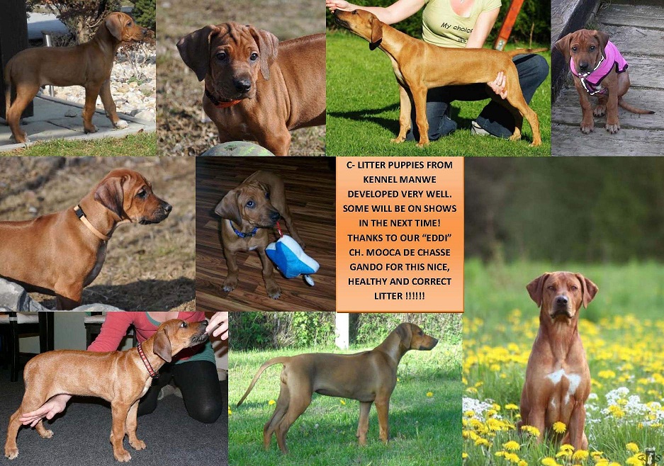 I spent a wonderfull weekend in czech in Kennel Manwe. It was wonderfull to see the wonderfull litter from the combination with our Ch. Mocca de Chasse Gando "Eddi" and Ch. Tusani Happy Zippy! The puppies are so amazing. All have wonderfull characters, are open with peopel and other things, have very nice colour, ridges, bones and body. It was a very nice, sunny and funny weekend! Thank you so much! Here are a lot amazing pictures of this perfect litter:
