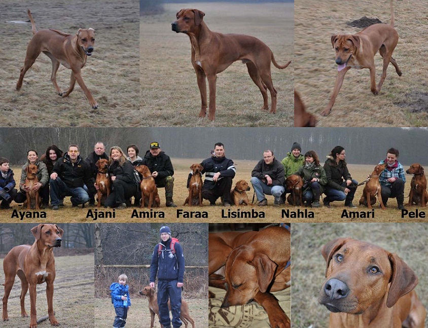 Bahati Nahlas Happy End At first we want to say "Thank you all!" for the help to find new nice home for our offspring girl Bahati Nahla. We are also proud to get very nice mails from the outland. But with this girl our heart had tell us what will be the best for this nice gir. Now she lives in our area with a wonderfull family we know since some years. They have also our very well socialiest, ridgeback-looking and friendly a-litter girl Ayoka Amari. They had some nice time on a little walk. After this we went in Nahlas new home. Both girls were very relaxed. Looks like it is normal, that they are together. We are very happy and proud, that this family want to have a second dog from us. Have fun with "our" girls! Click here to see the pictures! Ekundu Durah Ayoka Amari- 1 3/4 years old The last picture with all dogs at our house :) Bussy but nice time :) And also one pretty Eddi-daughter in Kennel Luanda is looking for a nice home. She is very nice, balanced and showquality girl. For more information and pictures contact me or look at www.lady-ridgeback.sk Escape to Heart by Luanda Ch. Mocca de Chasse Gando "Eddi" x Multi- & Grand Ch. Alexis Femme Fatale Luanda |