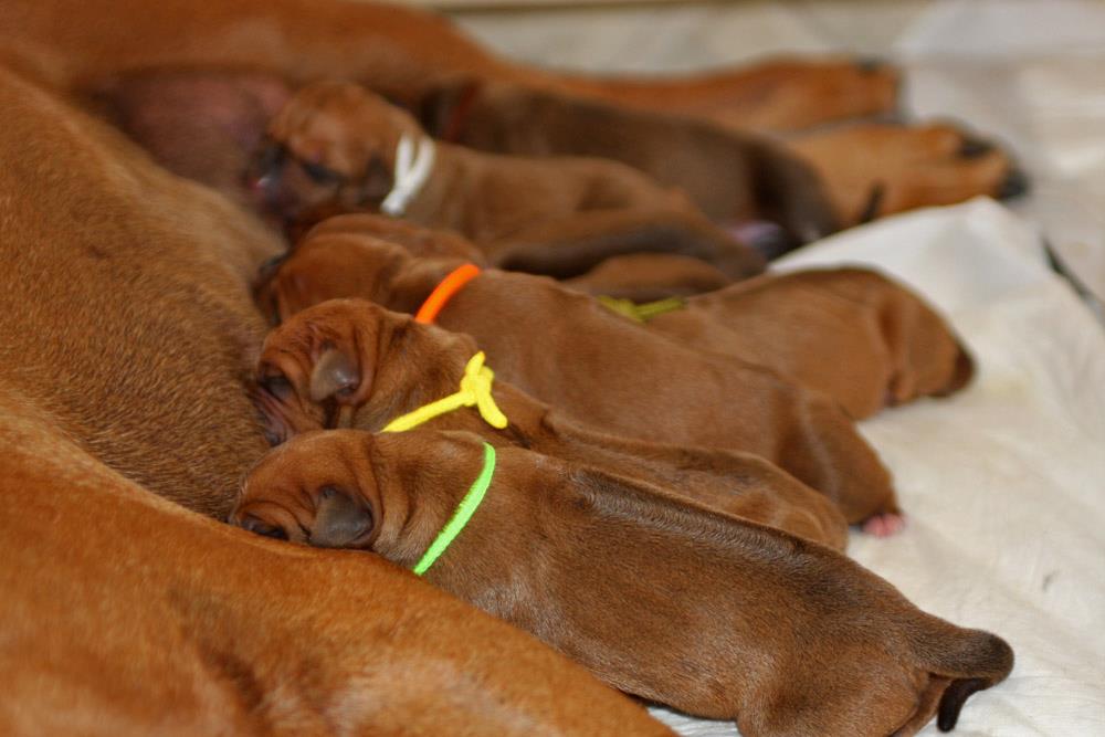 30. December 2012 Yesterday I was so sure that it would be my last update for this year. But I was wrong :) In the morning I had a little special feeling- and I was right. Eddi is a daddy again. In just 8 hours Kanda gave birth to 10 (5/5) wonderfull puppies. All are warm red wheaten, big (530g- 690g) and healthy. Besides 4 ridgeless puppies , all look showquality with nice ridges and less white. We are very happy about the last breeding info for this year! Here are the first pictures of Eddis and Kandas puppies.